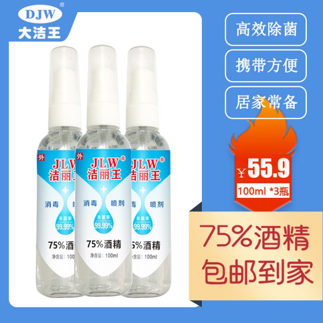 洁丽王75%酒精消毒喷剂100ml 1瓶/3瓶/5瓶